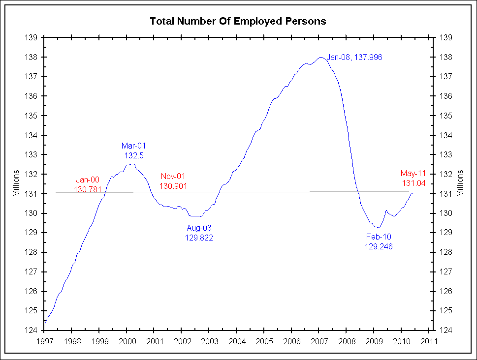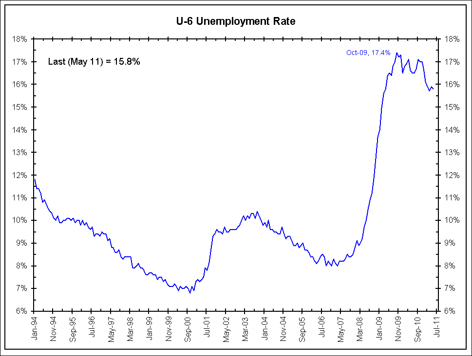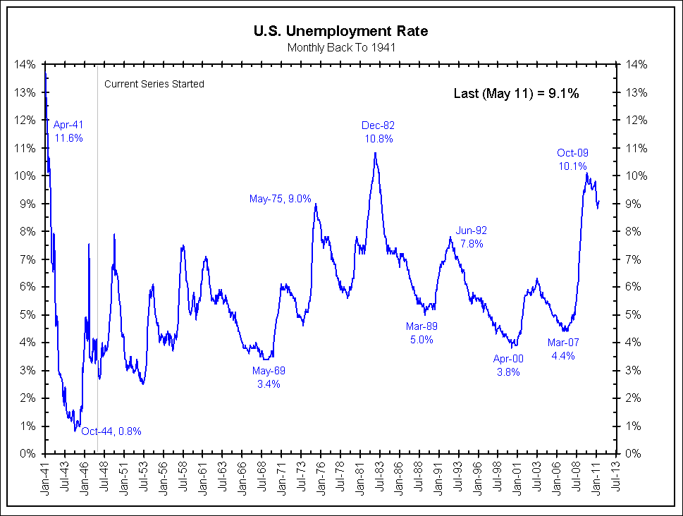 Nonfarm payroll employment changed little (+54,000) in May, and the unemployment rate was essentially unchanged at 9.1 percent, the U.S. Bureau of Labor Statistics reported today. Job gains continued in professional and business services, health care, and mining. Employment levels in other major private-sector industries were little changed, and local government employment continued to decline. … The change in total nonfarm payroll employment for March was revised from +221,000 to +194,000, and the change for April was revised from +244,000 to +232,000.