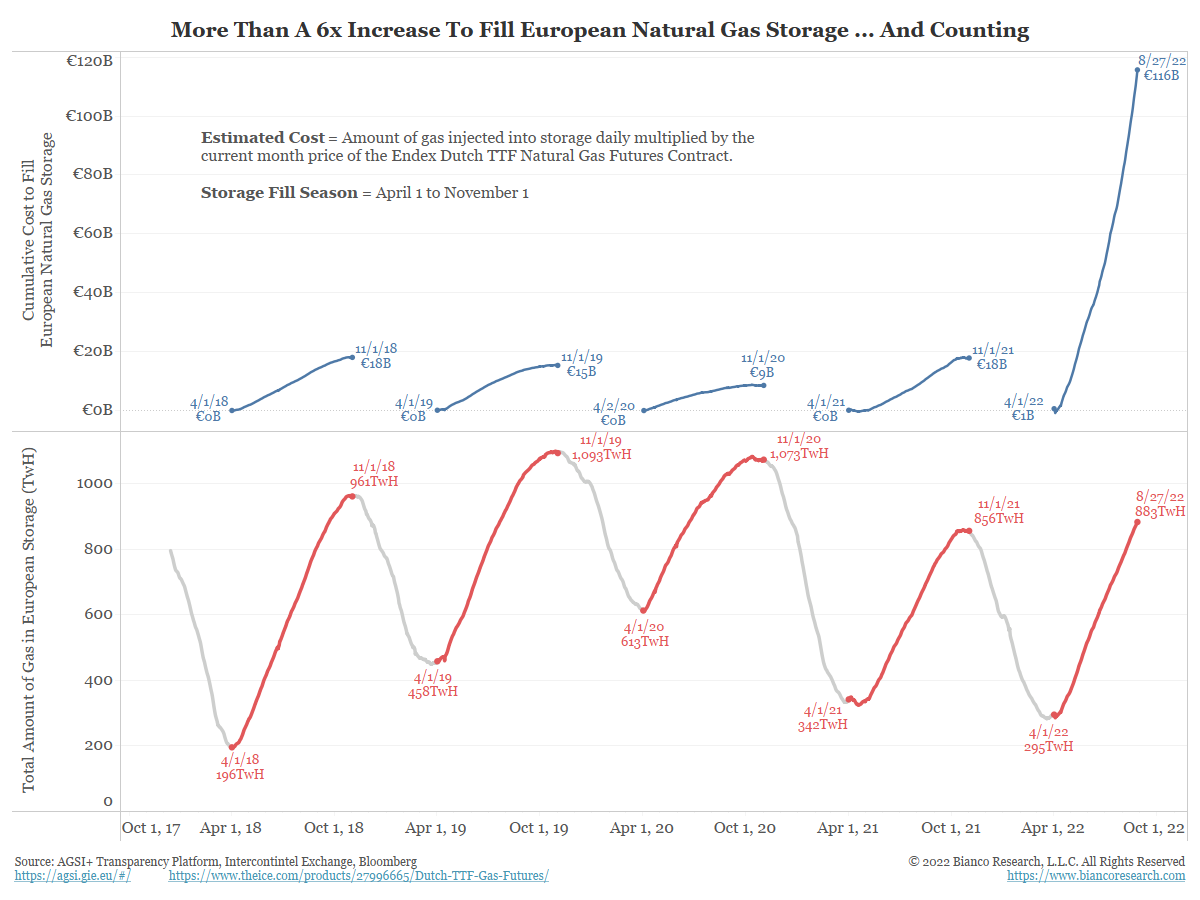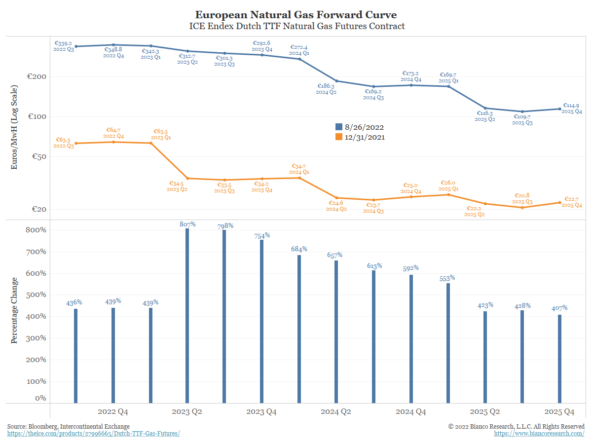 Natural gas storage only covers about 25% to 30% of winter natural gas needs, maybe more this year given the reductions in usage already implemented and proposed.