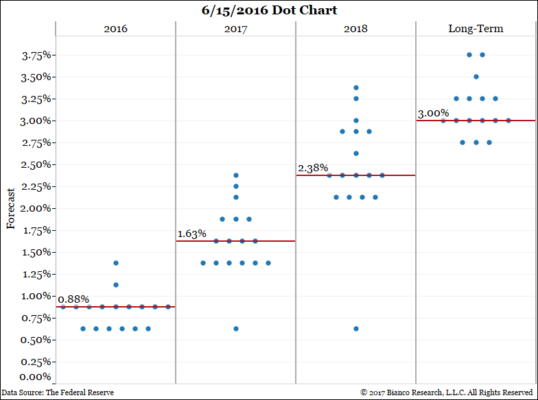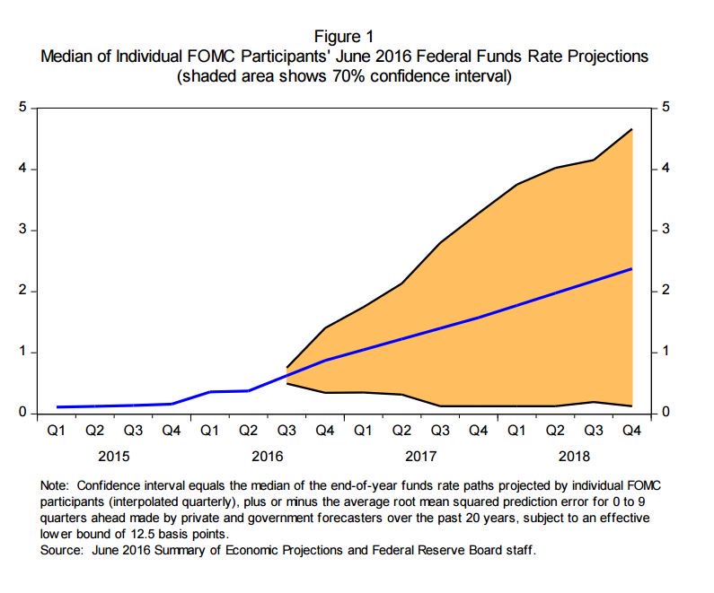 In Yellen’s Jackson Hole speech last August, she presented a version of a fan chart using the June 2016 projections: