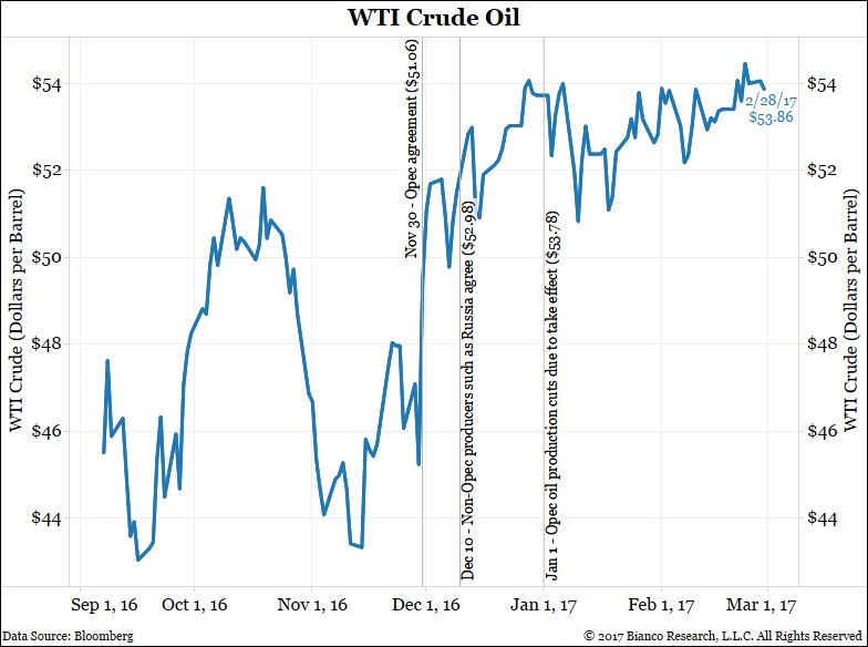 OPEC’s output agreement may have put a floor under prices, but it has also prompted the return of U.S. shale.OPEC’s Nov. 30 output agreement to cut production by 1.2 million barrels a day may have put a floor under the oil price, but has also awakened U.S. shale. Exploration and production companies have added 77 rigs this year to Feb. 24, according to the latest figures from Baker Hughes, while U.S shale production is forecast to reach about 4.87 million barrels a day in March, according to the Energy Information Administration’s latest Drilling Productivity Report. That’s the highest since May 2016.