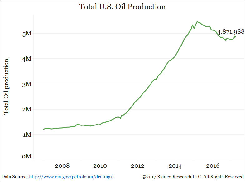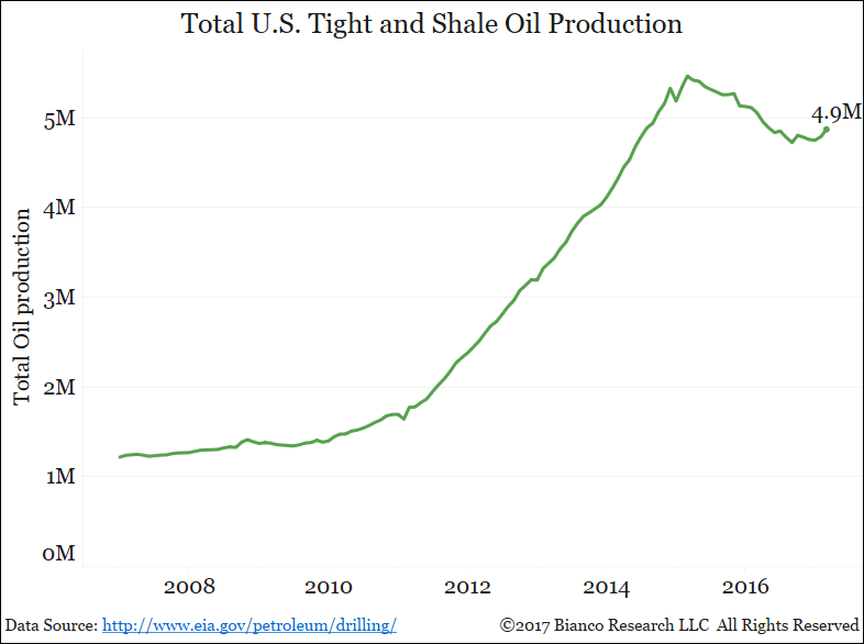 U.S. tight oil producing regions have seen a surge in drilling activity and production even as crude oil prices stagnated in 2017. Spot WTI has traded in a sub-$5 range over the past three months, unable to break above $55.