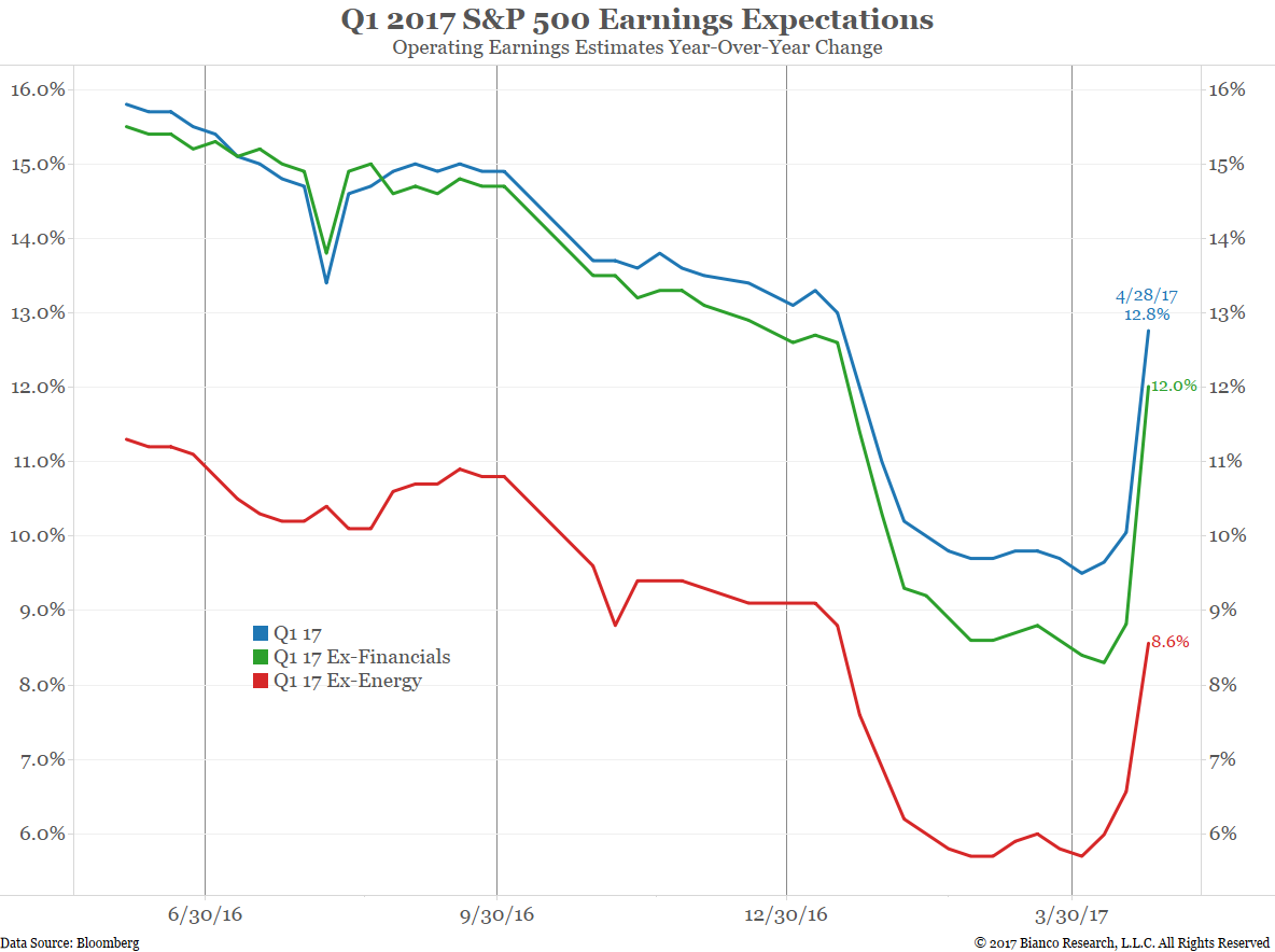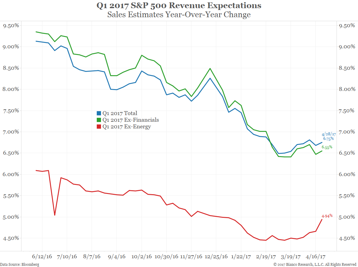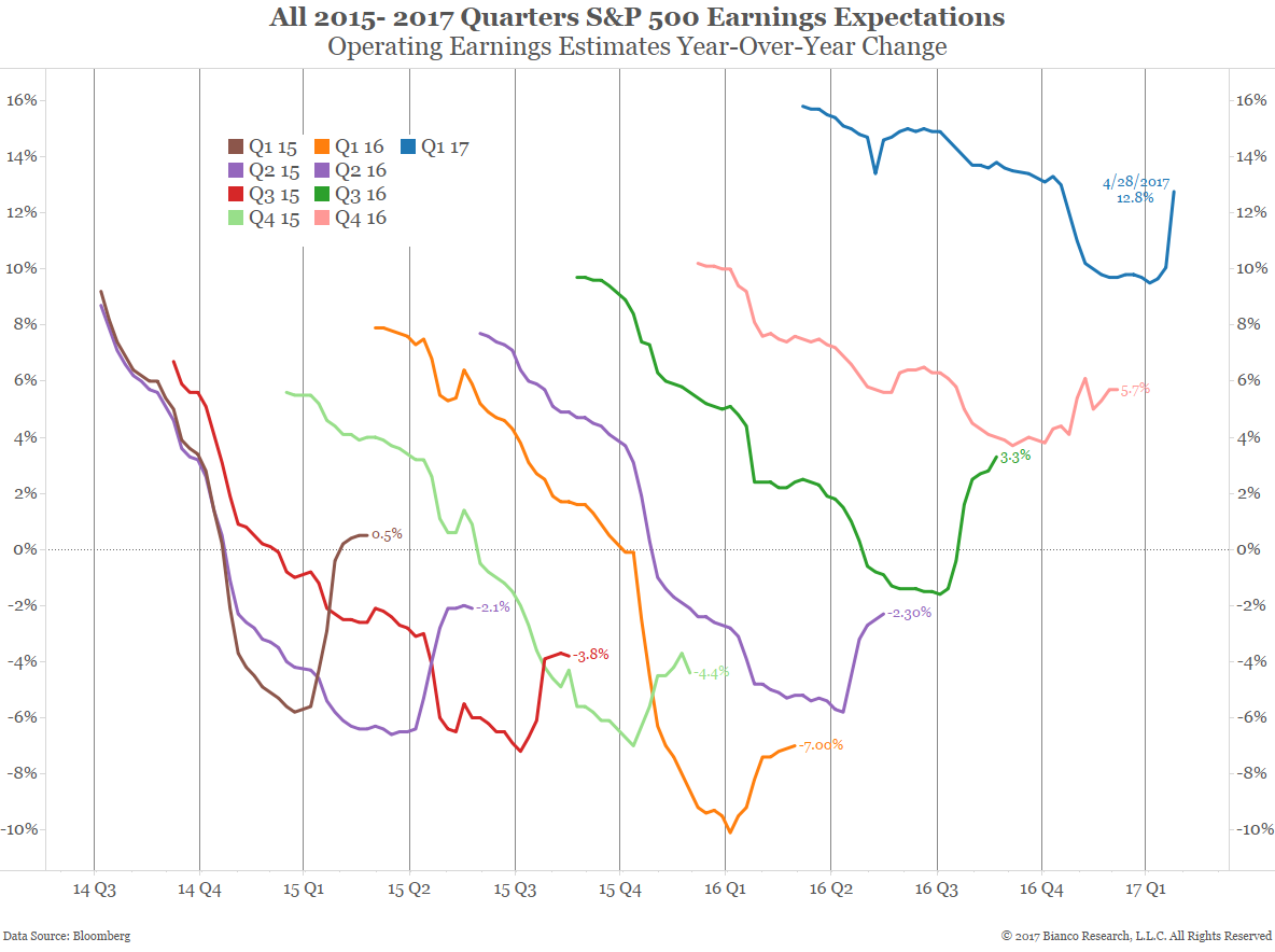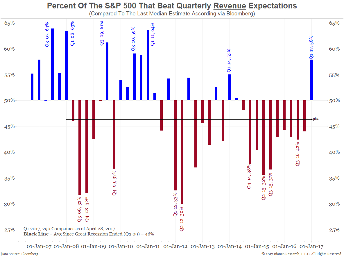 210 companies are left to report Q1 results. Historically the longer a company waits to report results, the worse their earnings usually are. Good news is rushed out early in earnings season while companies usually sit on poor results. Even considering this trend, however, Q1 2017 results are on track to be one of the best in many years.