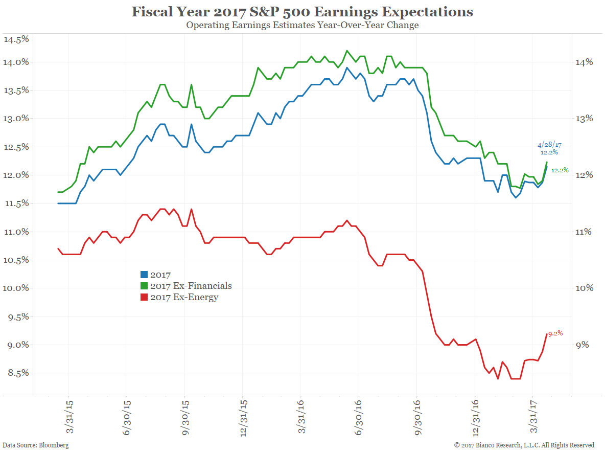 Since 2015 we have been unimpressed with earnings results. They have not been disastrous, but they have consistently underwhelmed. As late as last week we noted earnings were getting better but also expressed skepticism as ex-energy results had stalled out.