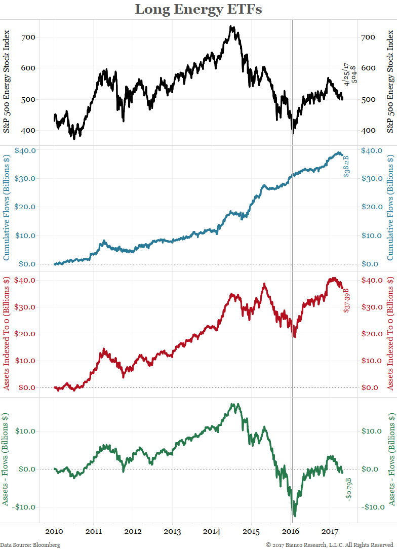 For example, USO, one of the most heavily traded commodities exchange traded products of any stripe, slid more than 5%, but some market observers believe oil’s most recent plunge is not justified by poor fundamentals. In fact, Goldman Sachs opines that oil fundamentals are actually decent. “Goldman is reiterating its confidence in oil at a time when investors are fretting over whether U.S. production, which has climbed to the highest since August 2015, will undermine curbs by the Organization of Petroleum Exporting Countries and its allies,” reports Serene Cheong for Bloomberg. “After posting three straight weekly gains on expectations OPEC will extend its supply cuts, crude is now set for a drop this week following a decline of more than 3.5 percent on Wednesday.” Oil traders are concerned over how fast U.S. shale oil producers will increase production to capture the rising prices. Rig counts have recently ticked higher and with credit and earnings issues improving for some U.S. shale drillers, those companies may seize the opportunity to exploit higher pricing in the near-term.