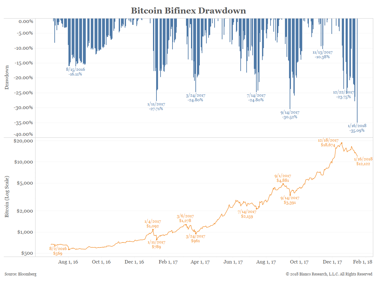 The volatility associated with holding Bitcoin has been a theme of ours over the past year. As we have pointed out: