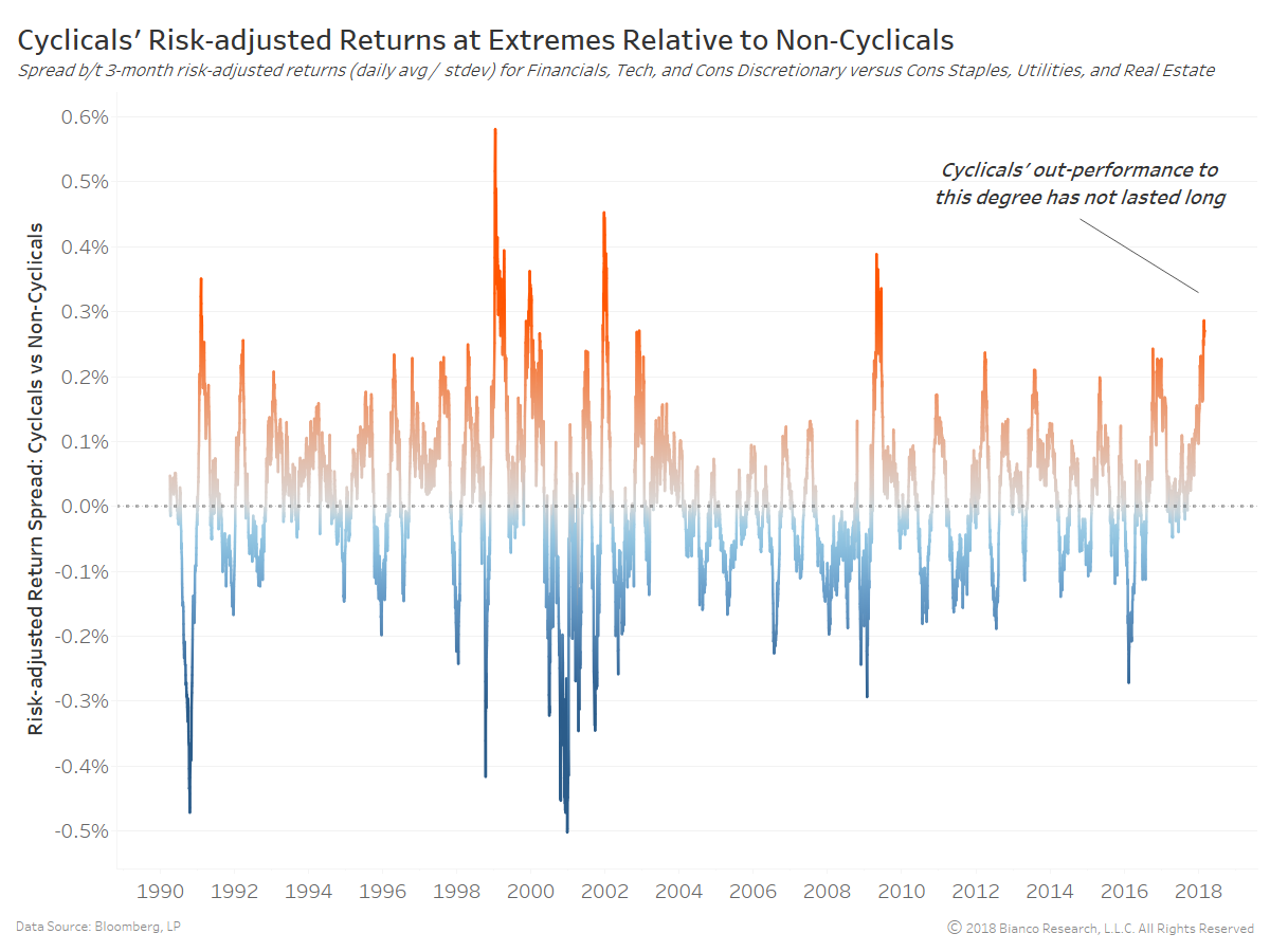 Heightened fears of inflation and higher U.S. Treasury yields have caused a significant divergence between cyclical and non-cyclical equity sectors. Such outperformance has historically not been sustainable.