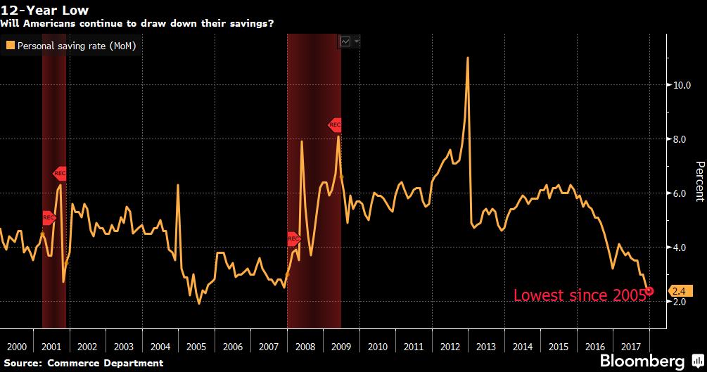 The current rosy outlook for hiring coupled with a drop in the personal savings rate has historically been met with lower consumer spending.
