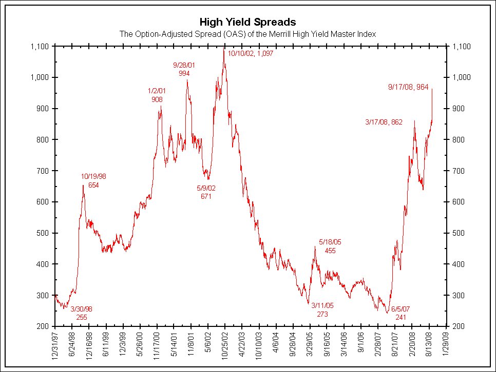 We believe this is the final capitulation process. It is “the beginning of the end.” Within the next three months the low price and high spread should be in place. However, between now and then it will not be pleasant. See the charts below. Both the High Yield and Investment Grade option-adjusted spreads (OAS) have widened by a similar amount, over 100 basis points in the last week!