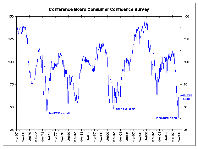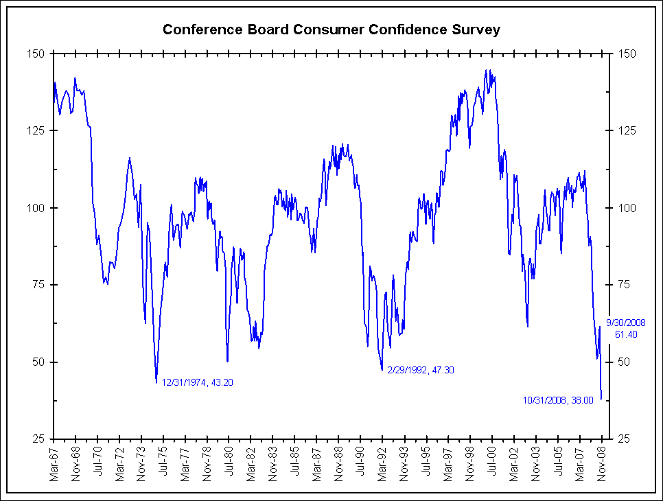 First out was October consumer confidence (chart below), which showed the largest ever one-month decline to a new 40-year low.