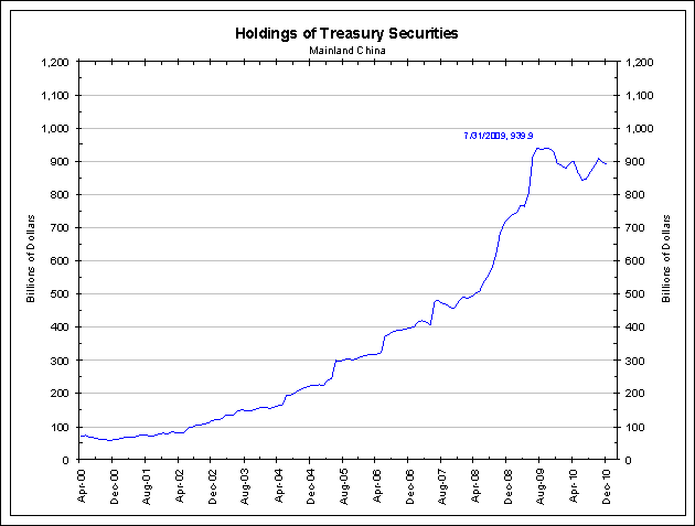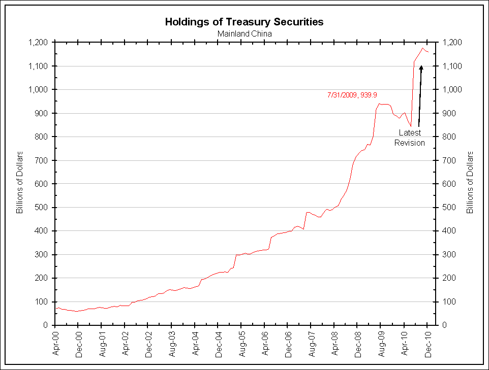 The US Treasury has dramatically revised data on foreign holdings of US government debt, estimating that China owns more Treasuries than previously thought while the UK holds only about half as much. The figures released on Monday suggest fears that China has been reducing its US dollar holdings may have been overstated. - Zero Hedge (Blog) – Chinese Treasury Holdings Revised $268 Billion Higher To $1.12 Trillion, Fed Still Top Holder Of US Debt